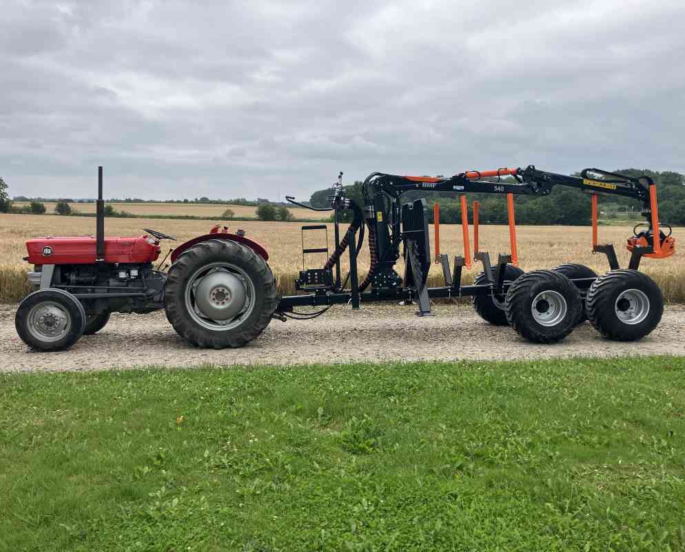 Denne skovvogn fåes med 4,3 m og 5,4 m kran.